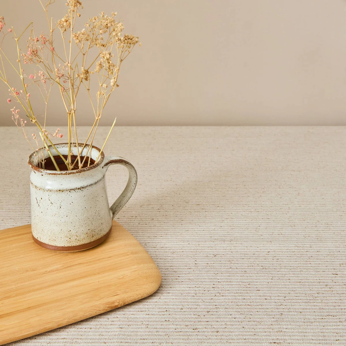 Mantel con diseño mil rayas, confeccionado en mezcla de algodón, lino y poliéster. Con hilos tintos y tratamiento antimanchas resinado. Aporta un toque moderno y práctico a la mesa.
