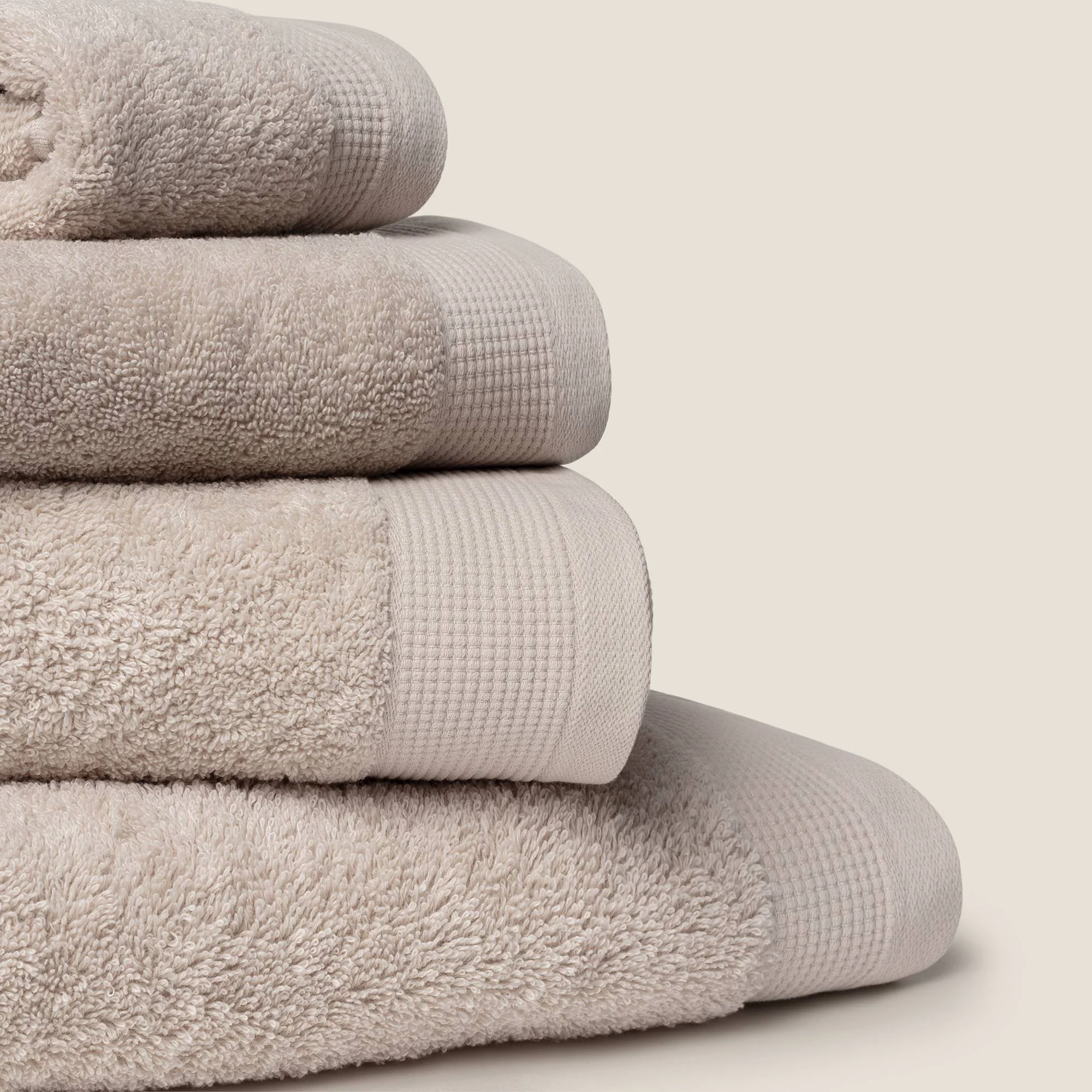 Toalla de rizo de algodón egipcio de 500 g. El algodón egipcio las hace mullidas, absorbentes y muy duraderas. Confeccionada en Portugal.